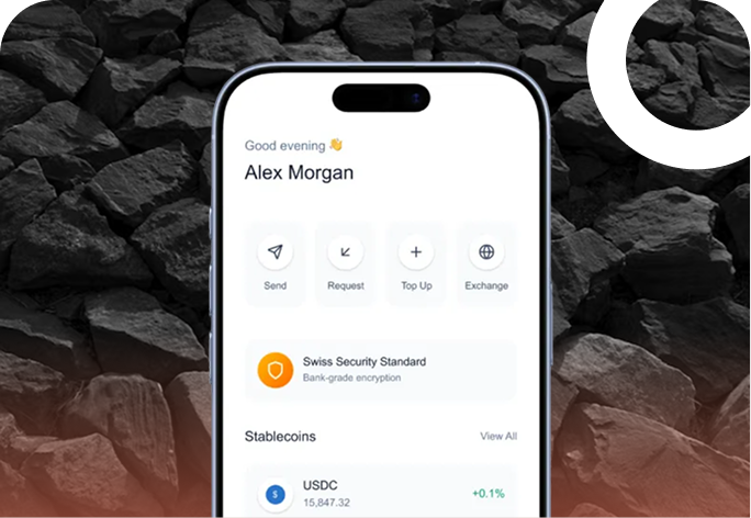 Open a Swiss Payments Account, issue cards, send payments and use selected stable coins.